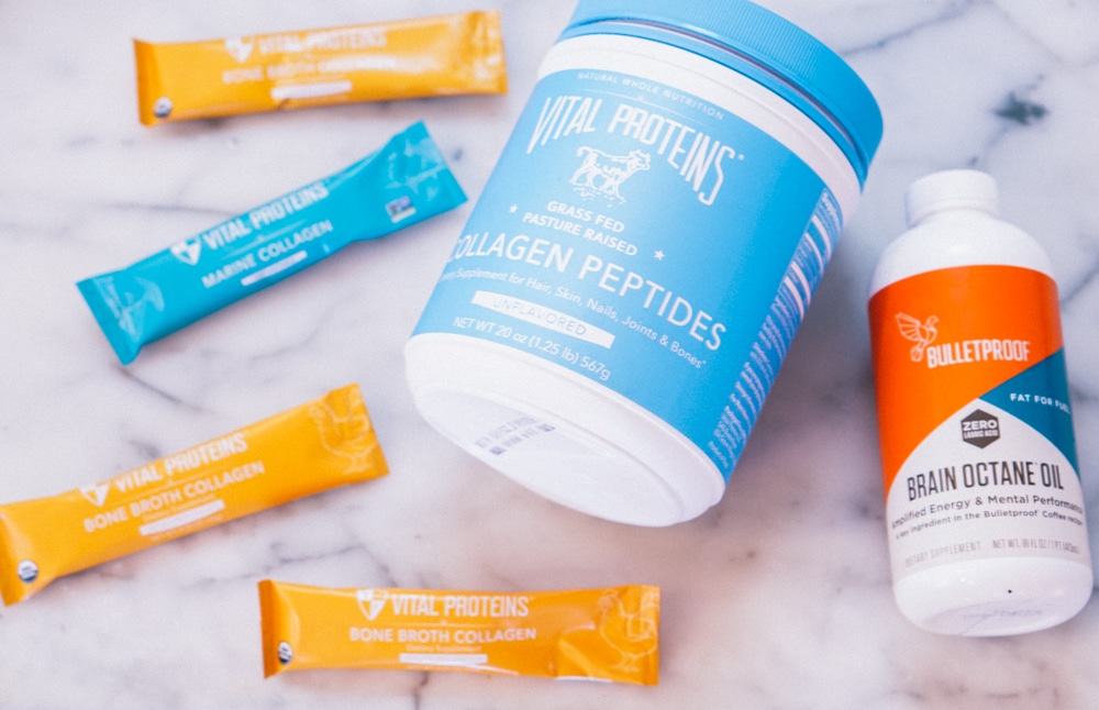 على الرغم من أن بعض الأطعمة، مثل مرق العظام تحتوي على الكولاجين ، فإن الأشخاص الذين يرغبون في الحصول على بشرة خالية من التجاعيد أو غيرها من الفوائد الصحية غالباً ما يبحثون عن مكملات لزيادة تناولهم للكولاجين.