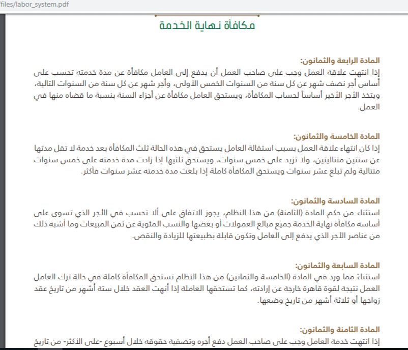 مستحقات نهاية الخدمة حسب قانون العمل السعودي ، مكافأة نهاية الخدمة By عبير حكم Posted on Updated on Views 0 مستحقات نهاية الخدمة حسب قانون العمل السعودي ، مكافأة نهاية الخدمة ، يتم حساب مستحقات نهاية الخدمة حسب قانون العمل السعودي وفقًا لآخر راتب تقاضاه الموظف Share on ... Facebook Messenger WhatsApp Telegram Twitter More Copy link Short link