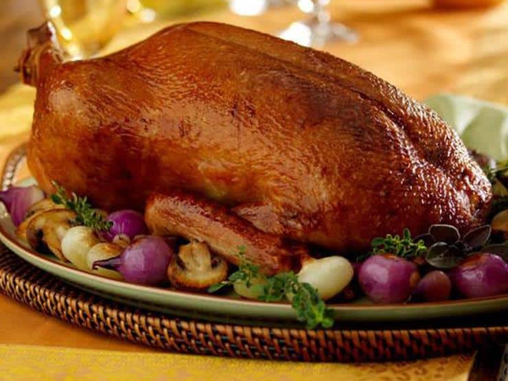 -بط بالبرتقال، وصينية من الرقاق باللحم