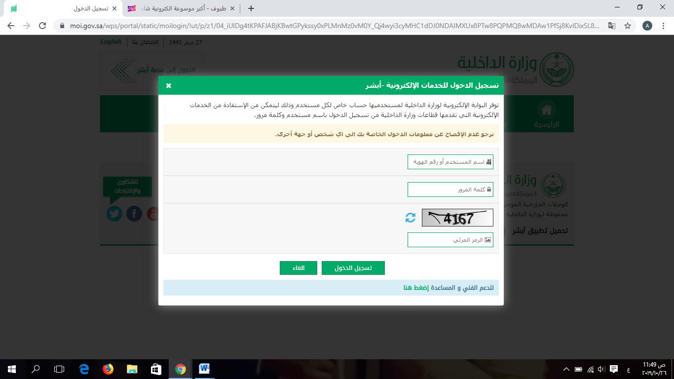 مخالفة قطع الاشارة فى السعودية والغرامات ، تسجيل الدخول في أبشر