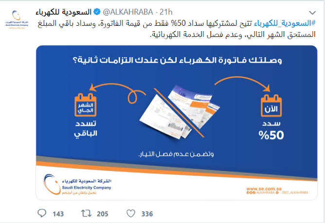 _ جدير بالذكر أن شركة الكهرباء كانت قد حثت جميع المشتركين على أن يقوموا بتحديث بياناتهم الخاصة على الموقع الرسمي للشركة السعودية للكهرباء، وذلك لتجنب حدوث أي أخطاء عند صدور الفاتورة الخاصة بالمشترك .