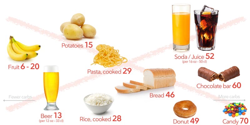 ويشمل ذلك الأطعمة النشوية مثل الخبز والمعكرونة والأرز والبطاطا، هذه الأطعمة عالية جدا في الكربوهيدرات.