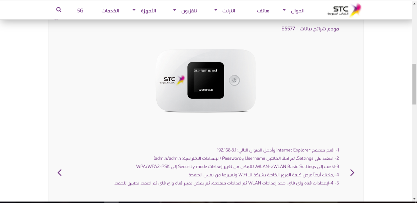 اسم المستخدم وكلمة المرور لمودم الالياف البصرية ، معرفة نوع المودم ، مودم شرائح بيانات E5577 ، في البداية يتم الدخول إلى متصفح Internet Explorer ، ثم يتم إدخال العنوان 192.168.8.1