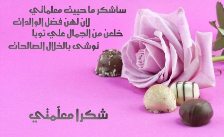 – إن الكلمات لتقف عاجزة عن شكرك يا معلمتي ، و لو قدمنا لكي كل الورود في العالم لن نستطيع شكرك على مجهودك ، و تعبك معنا لكي نصبح ناجحين ، و متميزين .